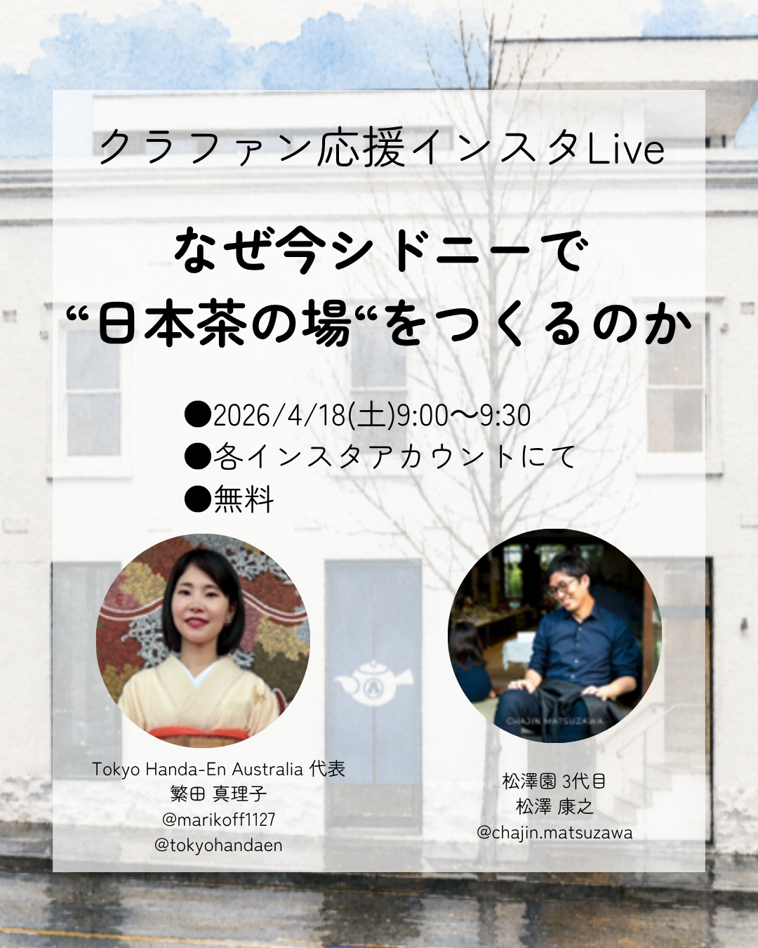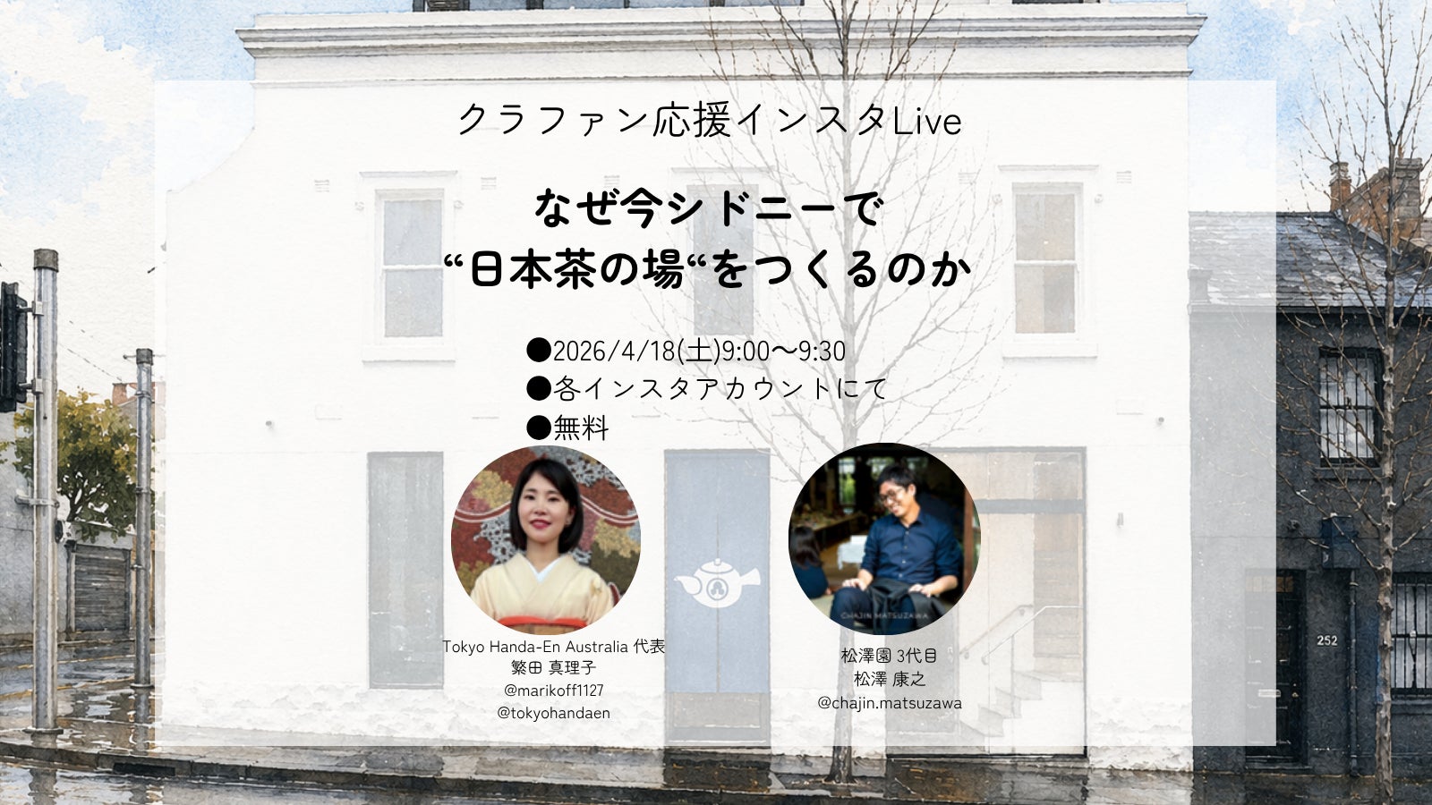 そこで今回は、このTOKYO HANDA TEA Sydney, Surry Hills の代表繁田真理子さんに海外でのチャレンジについてインスタLiveであれこれお話を伺ってみます