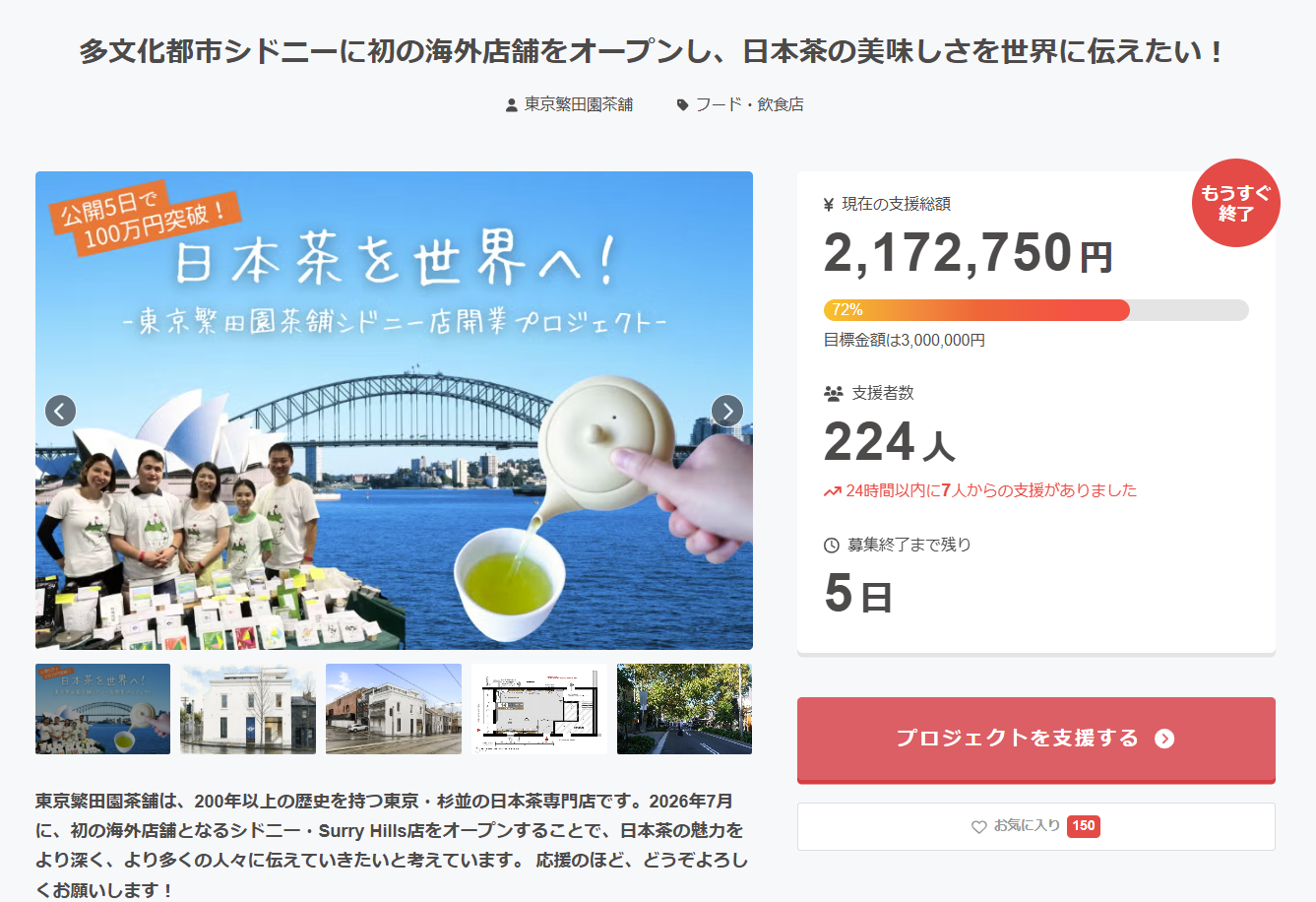 クラウドファンディングの終了まであと【5日】。